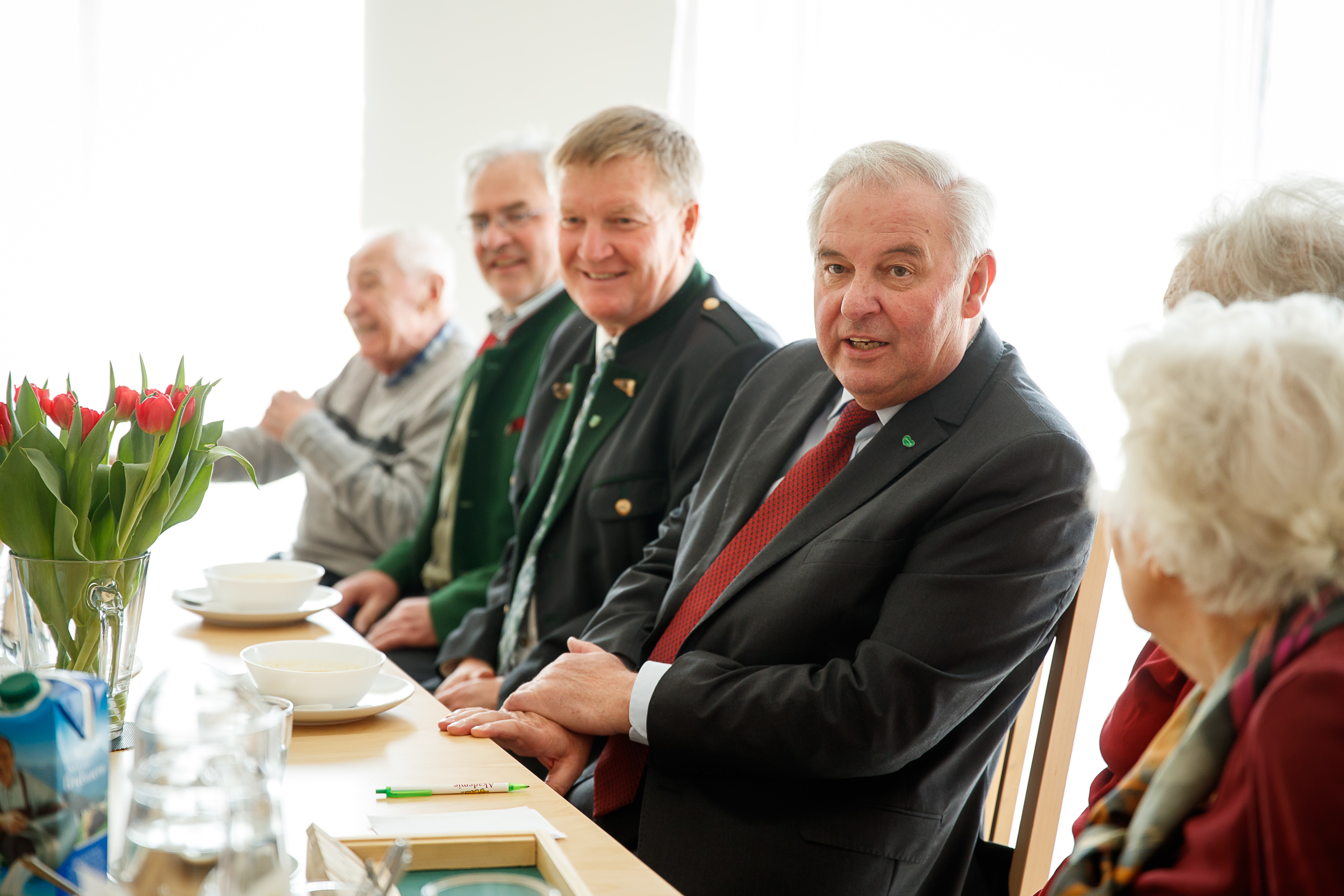 Da strahlten die Augen der Bewohner, egal, ob sie zwei Jahre alt waren oder 90 plus! Gestern Dienstag stattete Landeshauptmann Hermann Schützenhöfer dem „Generationenhaus“ in der Gemeinde Stattegg einen Besuch ab. Der steirische Landeschef ließ sich dabei in Anwesenheit von ÖVP-Bürgermeister Karl Zimmermann und ÖVP-Vizebürgermeister Richard Kohlbacher durch die Wohnanlage führen und lauschte den Erzählungen der Senioren, die ihm auch eine köstliche Fastensuppe servierten. Die Kinder begrüßten den Landeshauptmann, der seit einem Jahr selbst stolzer Opa ist, mit einer kleinen Gesangseinlage und zeigten ihm ihr „Paradies“, den Spielplatz.