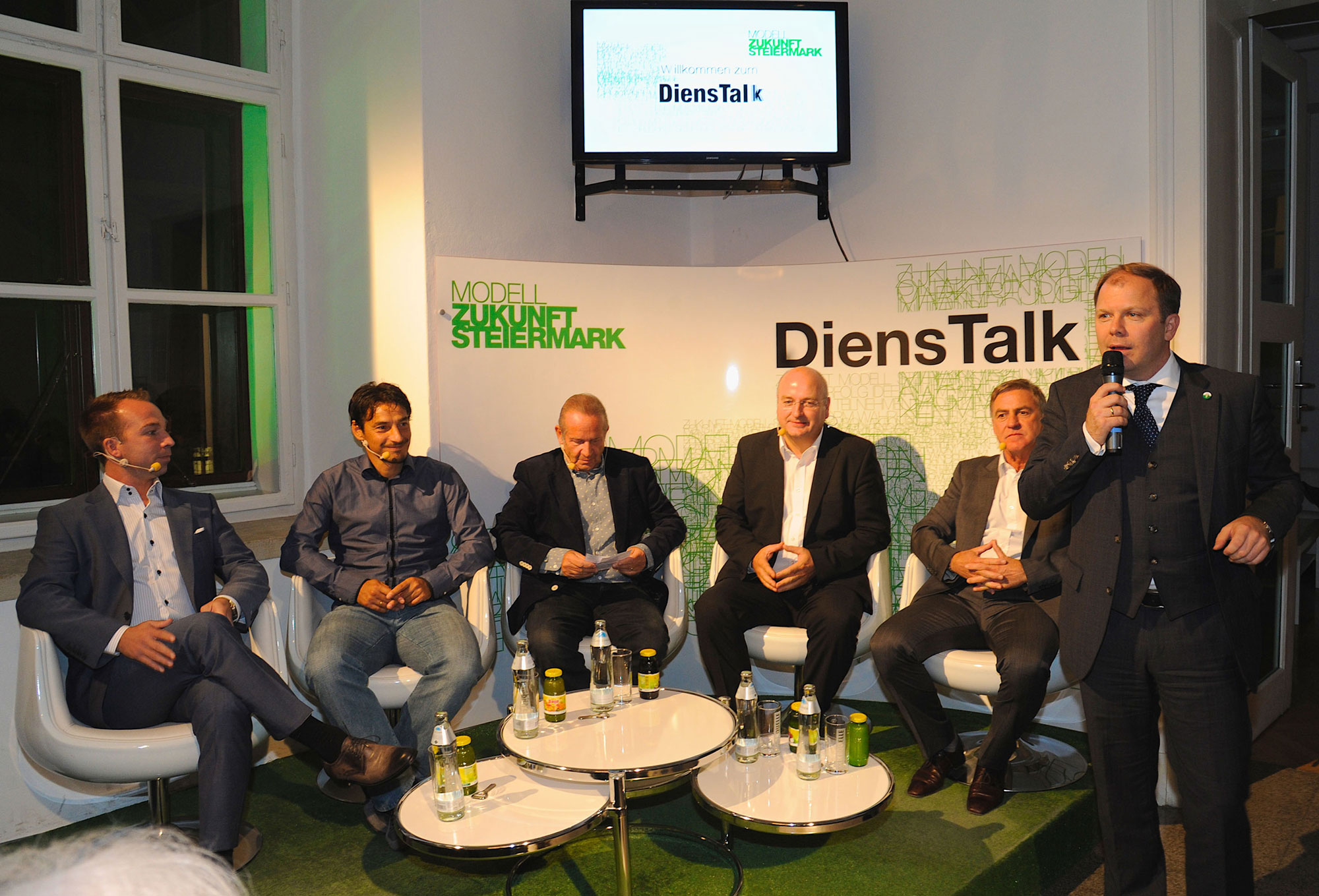 „Das ÖFB-Team und der Traum von Brasilien“, den Kick-off für diesen unterhaltsamen und diskussionsreichen DiensTalk gab Landesgeschäftsführer LAbg. Mag. Bernhard Rinner. Über das runde Leder diskutierten am Podium der Ex-Fußballer und ORF-Analytiker Roman Mählich, der Präsident der Fußball-Bundesliga Ing. Hans Rinner, Ex-Fußballer und GAK-Meistertrainer Walter Schachner und Ex-Fußballer Ivica Vastic. Moderiert wurde der Abend vom legendären ORF-Sportkommentator Robert Seeger.