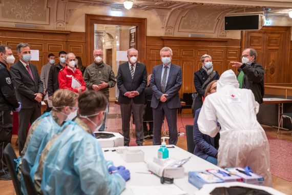 Am kommenden Wochenende (12. und 13. Dezember 2020) finden in der Steiermark die flächendeckenden COVID-19-Testungen statt. In diesem Zusammenhang appellierten heute Vormittag (9.12.2020) Landeshauptmann Hermann Schützenhöfer, Landeshauptmann-Stellvertreter Anton Lang, Bürgermeister Siegfried Nagl, Militärkommandant Hans Zöllner und Rotes Kreuz Geschäftsführer Andreas Jaklitsch an die Steirerinnen und Steirer, diese Möglichkeit der freiwilligen und kostenlosen Corona-Testung am kommenden Wochenende wahrzunehmen.