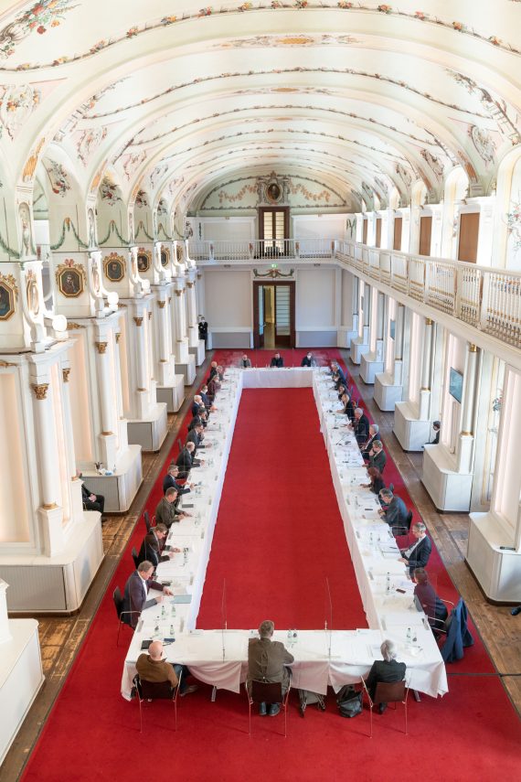 Am steirischen Impfgipfel in der Aula der Alten Universität nahmen heute (11.1.2021) rund 30 Spitzenvertreterinnen und -vertreter der steirischen Landesregierung, der Gemeinden, der Krankenanstalten (KAGes) und der steirischen Ärzteschaft an einem runden Tisch Platz. Das wichtigste Ergebnis des Gipfels ist eine Arbeitsgruppe, die um Impfkoordinator Michael Koren gebildet werden wird, um mit den Gemeinden, der KAGes, der Stadt Graz und der Ärztekammer die Bedarfserhebung bei der Gruppe der über 80-Jährigen zu organisieren.