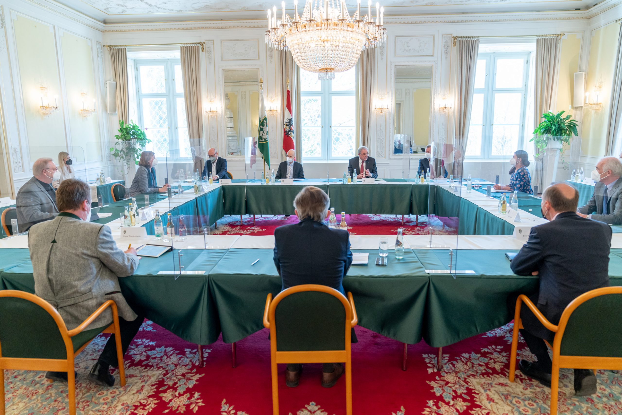 Unter Leitung von Landeshauptmann Hermann Schützenhöfer wurde heute Vormittag (4.2.2021) ein Arbeitsmarktgipfel in der Grazer Burg abgehalten. Im Beisein von Arbeitsminister Martin Kocher, Landeshauptmann-Stellvertreter Anton Lang, Wirtschaftslandesrätin Barbara Eibinger-Miedl und Soziallandesrätin Doris Kampus wurde gemeinsam mit den Spitzen der steirischen Sozialpartner die aktuelle Situation am Arbeitsmarkt und in der Wirtschaft analysiert. Ebenfalls thematisiert wurden die aktuellen Arbeitslosenzahlen, die geplanten Öffnungsschritte im Handel sowie ein Ausblick der einzelnen Branchen.