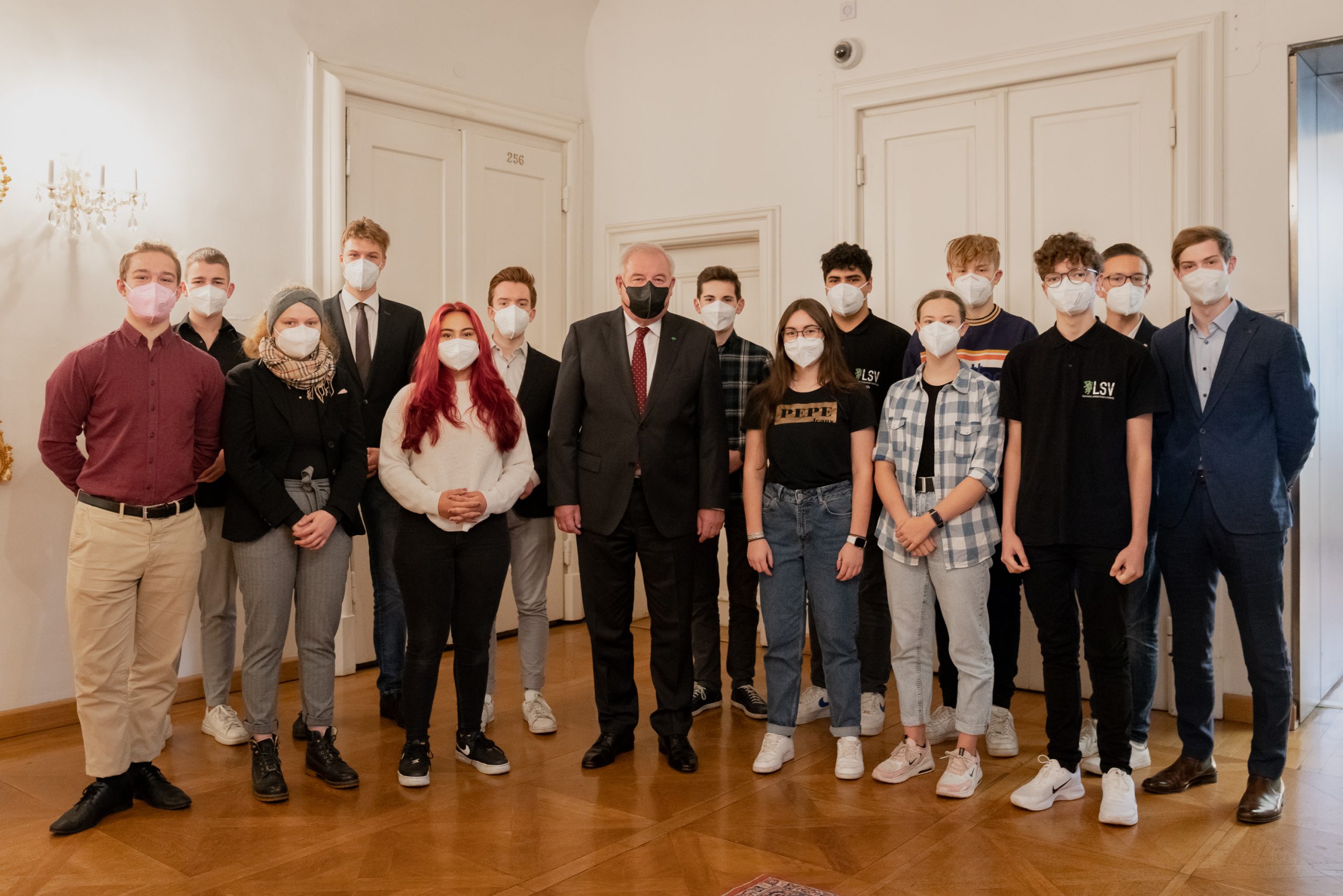 Heute Vormittag (22.10.2021) empfing Landeshauptmann Hermann Schützenhöfer die Schulsprecherinnen und Schulsprecher der steirischen Allgemeinbildenden höheren Schulen (AHS), der Berufsbildenden mittleren und höheren Schulen (BMHS), der Berufschulen (BS) sowie die Landesschülervertretung zu einem gemeinsamen Frühstück in der Grazer Burg. Genutzt wurde das Frühstück für einen angeregten Austausch über die aktuelle Situation an den steirischen Schulen.