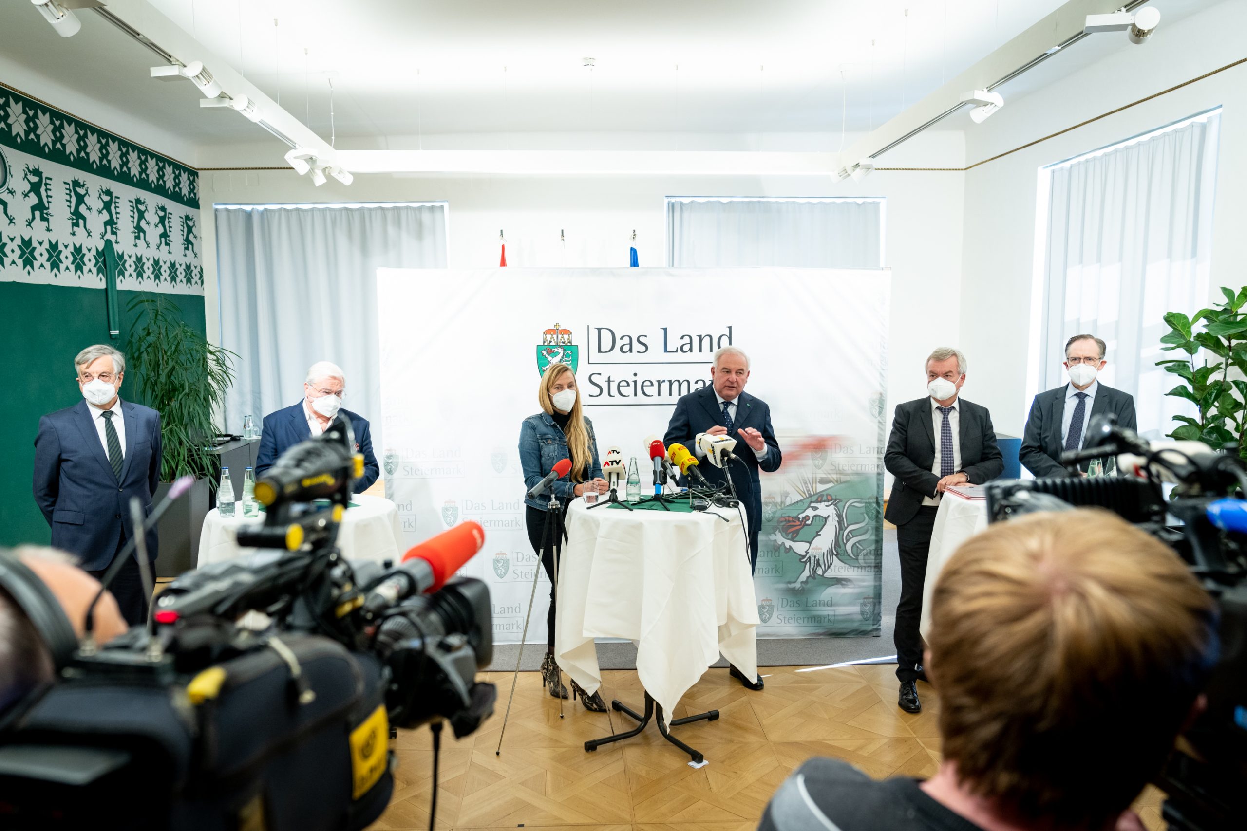 Landeshauptmann Hermann Schützenhöfer, Landeshauptmann-Stellvertreter Anton Lang und Gesundheitslandesrätin Juliane Bogner-Strauß verkündeten diese Maßnahmen heute (27.10.2021) nach Beratungen mit Verantwortlichen aus den verschiedensten mit der Virus-Bekämpfung beschäftigten Bereichen.