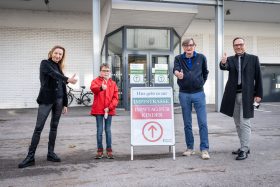 Start der Kinderimpfung: Landesrätin Juliane Bogner-Strauß, Lukas (11), Kinderarzt Jörg-Ingolf Stein und Impfstraßenkoordinator Harald Eitner (v.l.) vor der Impfstraße in der Grazer Messe. © Land Steiermark/Jesse Streibl