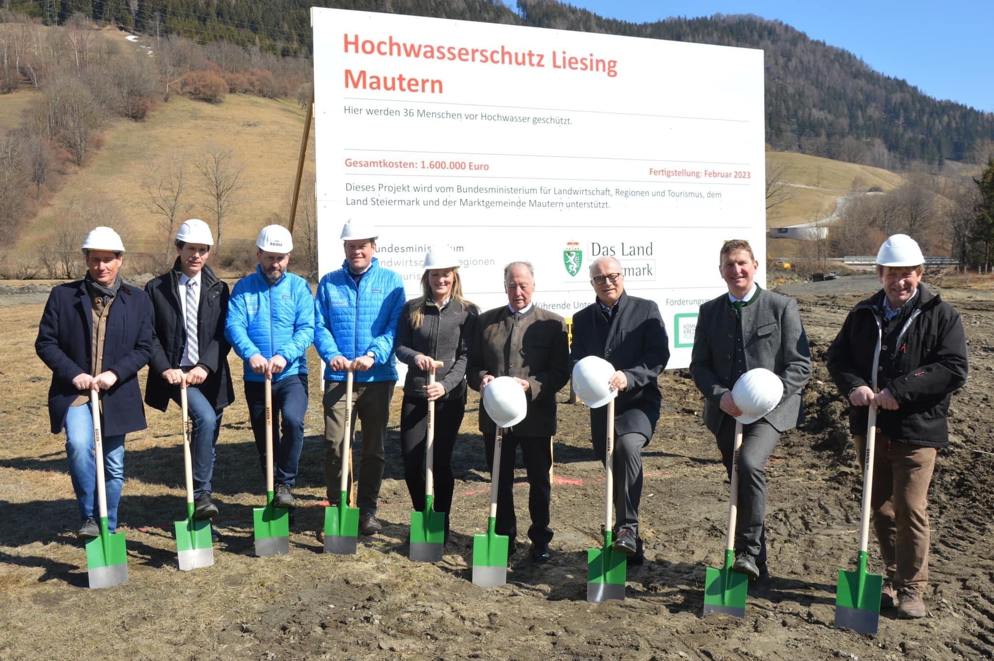 Mit dem Spatenstich am 21. März 2022 wird der Schutz eines weiteren Ortsteils von Mautern vor Hochwässern an der Liesing in Angriff genommen.