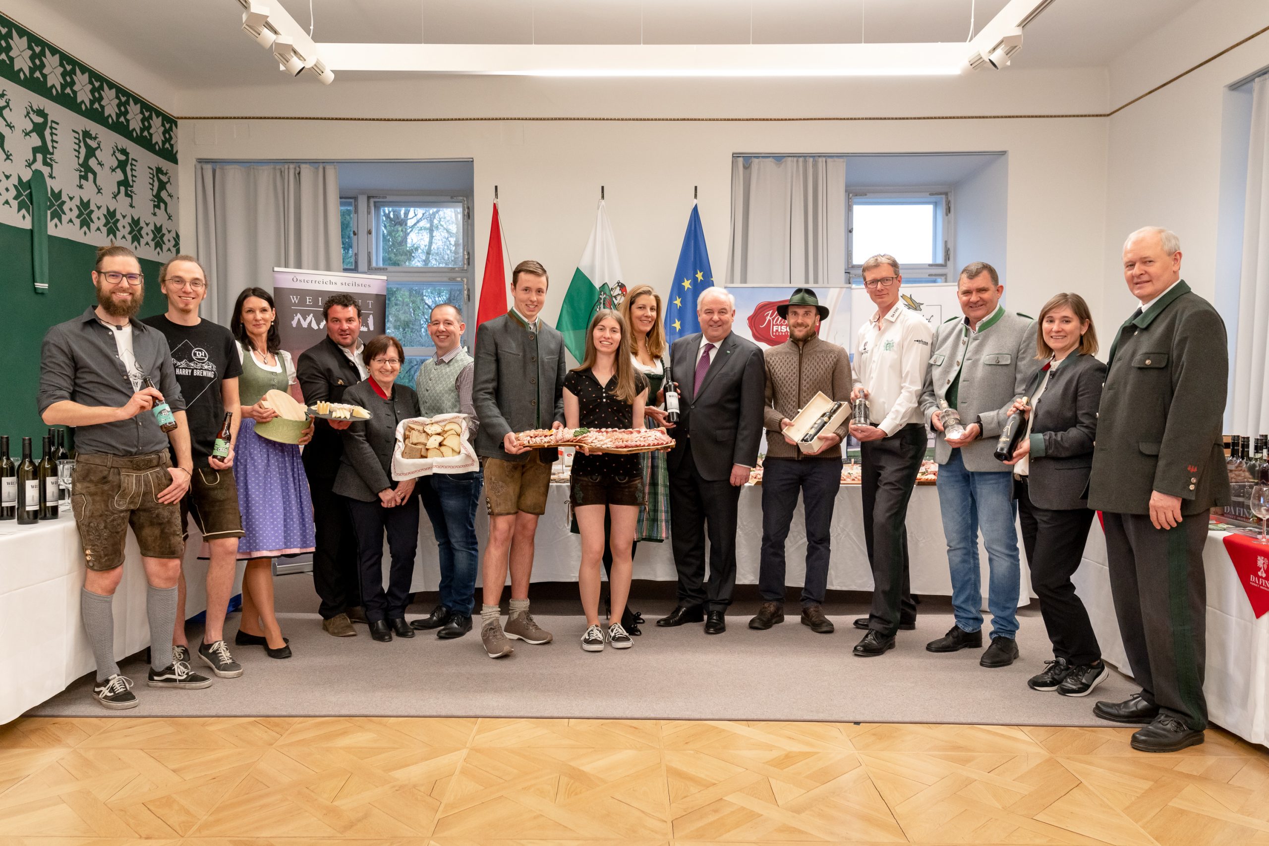 Mehrere heimische Betriebe sorgten für österliche Gaumenfreuden: Die Fleischspezialitäten kamen von der Landwirtschaftlichen Fachschule in Hatzendorf, das Brot kam von den Gewinnern der Osterbrotprämierung 2021, der Familie Malli aus Kitzeck. Ebenfalls aus Kitzeck stammten die steirischen Käsespezialitäten der Käserei Fischer, die das kulinarische Erlebnis abrundeten. Beste und höchst prämierte Weine wurden vom Weingut Krispel, Weingut Wruss, Weingut Skoff und dem Weingut „Da Finz“ kredenzt. „Tom&Harry“ aus Kapfenberg ergänzten die Osterjause mit ihren Bierspezialiäten. Einen hochprozentigen Beitrag brachte Mario Angerer aus Kalwang mit seinem „GINtschilla“.