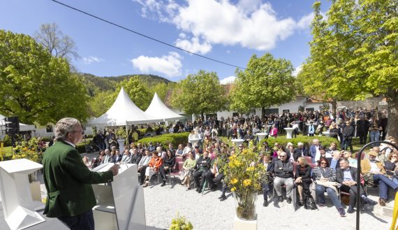 Schauplatz der Eröffnungsfeierlichkeiten war die Meierei, eingebettet zwischen der Tierwelt und dem Schloss Herberstein. Durch die Veranstaltung führte Moderatorin Kathi Wenusch, die neben den Hauptverantwortlichen der STEIERMARK SCHAU auf der Bühne auch zahlreiche Ehrengäste im Publikum begrüßte: Landesrätin Ursula Lackner und Landesrat Werner Amon, den Nationalratsabgeordneten Christoph Stark, die Landtagsabgeordneten Lukas Schnitzer, Hubert Lang und Georg Schwarzl, die Bezirkshauptfrau Kerstin Raith-Schweighofer, Landesamtsdirektorin Brigitte Scherz-Schaar, die Konsules Edith und Johannes Hornig und Marianne Graf, Pater Martin Höfler, Bildungsdirektorin Elisabeth Meixner, Aufsichtsratsvorsitzender Michael Lehofer, Kuratoriumsmitglieder des Universalmuseums Joanneum Elgrid Messner, Barbara Stelz-Marx, und Patrick Schnabl, Bürgermeister der Gemeinde Stubenberg am See Alexander Allmer, Naturschutzbeauftragter Christian Mairhuber und sein Vorgänger Johannnes Gepp.