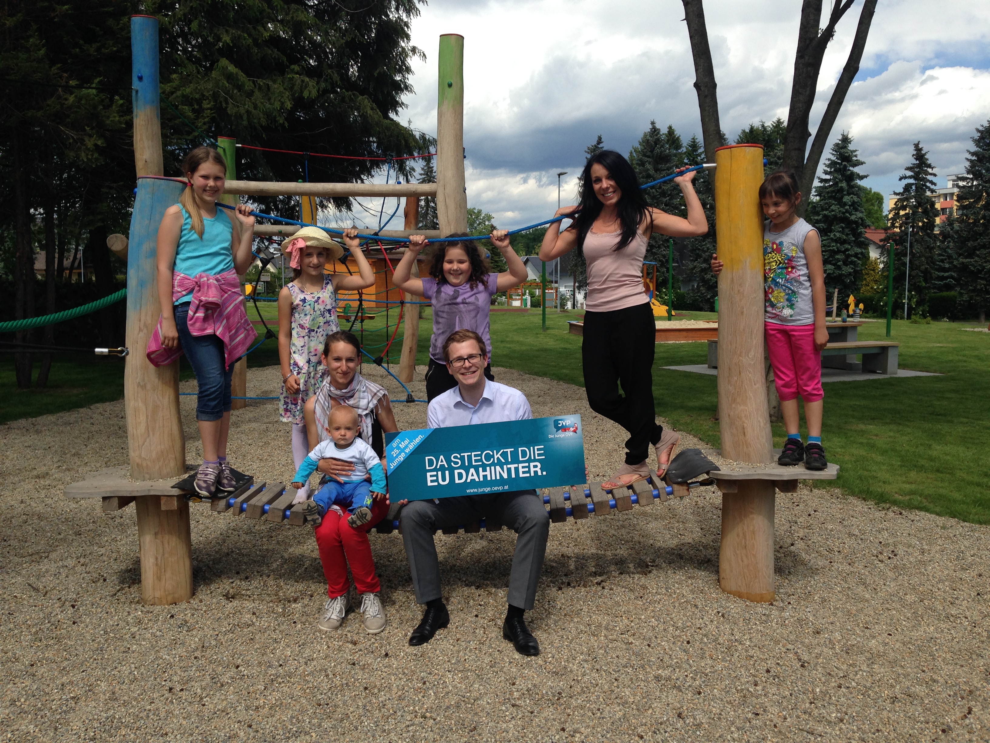 Mit dem ironischen Slogan „Da steckt die EU dahinter“ macht er darauf aufmerksam, dass etwa die Ortsbildgestaltung und somit auch der Generationenpark mit Fördermitteln der EU finanziert wurde: „Österreich bekommt seine EU-Beiträge vielfach zurück. So steckt in Feldkirchen die EU hinter einer großen Fördersumme“. Mit dieser Aktion will Frank auch die Bedeutung der EU-Wahlen am 25. Mai für Österreich deutlich machen: „Es ist nicht egal, wer in Brüssel die Interessen Österreichs vertritt. Als junger Kandidat will ich mich dafür stark machen, dass die Steiermark auch in Zukunft von der EU-Mitgliedschaft Österreichs profitiert“, so Frank abschließend.