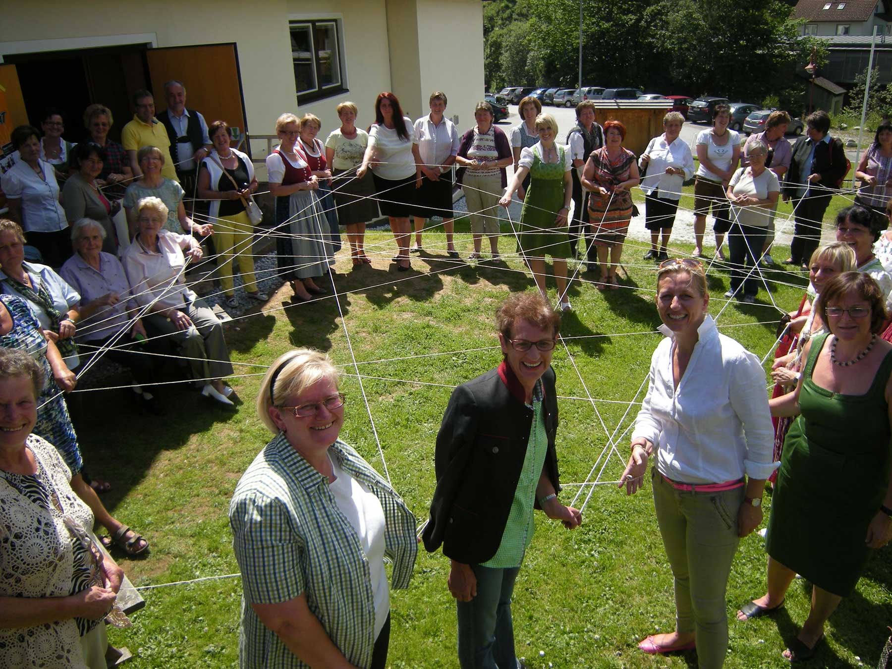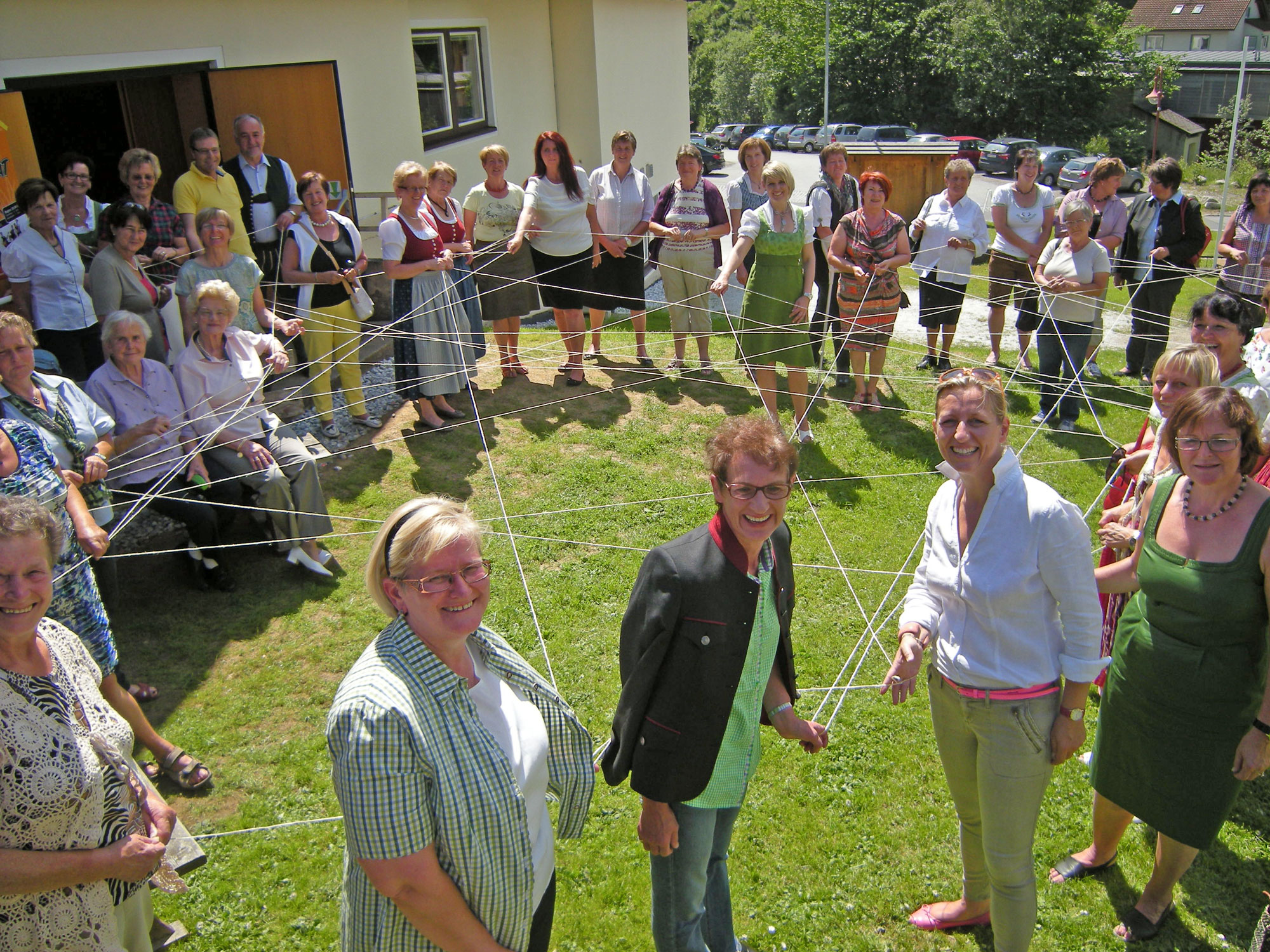 „Wir wissen, dass wir einander brauchen und wir wissen, dass wir uns aufeinander verlassen können“ – symbolisiert wurde dieser Gedanke durch das Knüpfen eines Frauennetzes vor dem Kultursaal.
