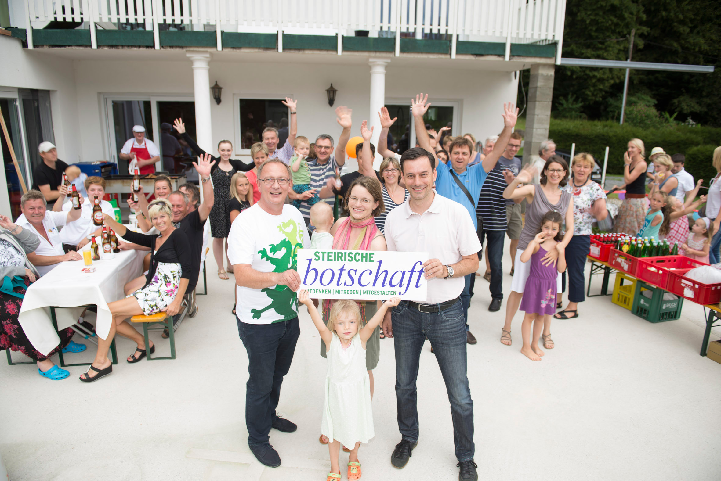 Die Familie Heizmann nutzte das gesponserte Sommerfest gleich für eine große Familienparty. Eingeladen waren zahlreiche Verwandte, Freunde und Nachbarn. Gefeiert wurde nicht nur der Gewinn, sondern zugleich auch die vorgezogene Hauseinweihungsfeier sowie die Geburtstage des Ehepaares und der älteren Tochter (5 Jahre) – alle drei sind Augustkinder. Landesgeschäftsführer Detlev Eisel-Eiselsberg und Bezirksobmann Ernst Gödl gesellten sich zu den Gratulanten und nahmen noch einige Ideen und Wünsche der Gäste an die Politik mit nach Hause.