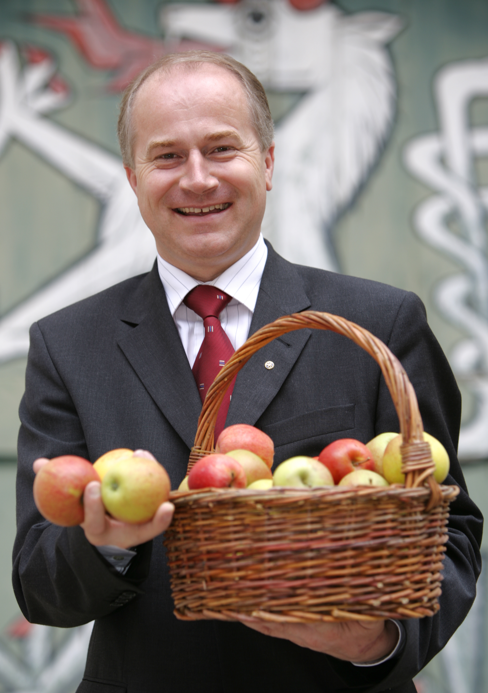 Nach einem Gespräch zwischen Gesundheitslandesrat Mag. Christopher Drexler und Agrarlandesrat Johann Seitinger wurde vereinbart, dass sich die Steiermärkische Krankenanstaltengesellschaft m.b.H. (KAGes) mit den heimischen Apfelbauern solidarisch erklärt. Die einzelnen Häuser sind daher gebeten, den steirischen Apfel im Rahmen ihrer Möglichkeiten in nächster Zeit noch stärker in den Mittelpunkt zu rücken.