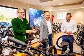 Im Zuge des Bezirkstages besuchte Landeshauptmann Christopher Drexler auch den Rad-Shop Pörl Sport Admont.