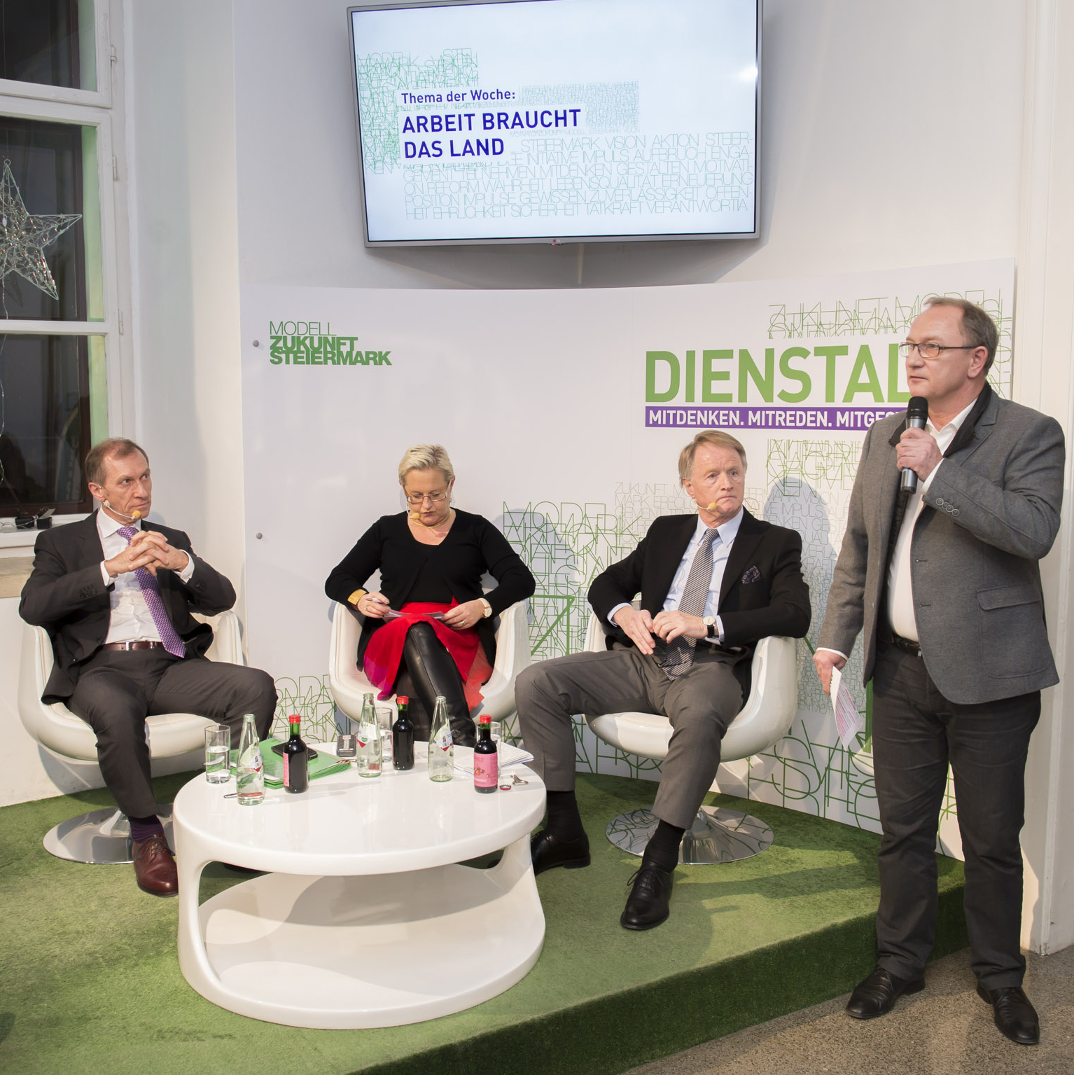 Die hohe Arbeitslosigkeit ist ein Dauerbrenner in der politischen Diskussion. Derzeit sind rund 450.000 Personen in Österreich als arbeitslos vorgemerkt. „Arbeit braucht das Land! Schulterschluss statt Klassenkampf“, so der Titel des DiensTalk in der Zentrale der Steirischen Volkspartei mit dem Präsidenten der Arbeiterkammer, Josef Pesserl, und dem Präsidenten der Industriellenvereinigung Steiermark, Mag. Jochen Pildner-Steinburg.