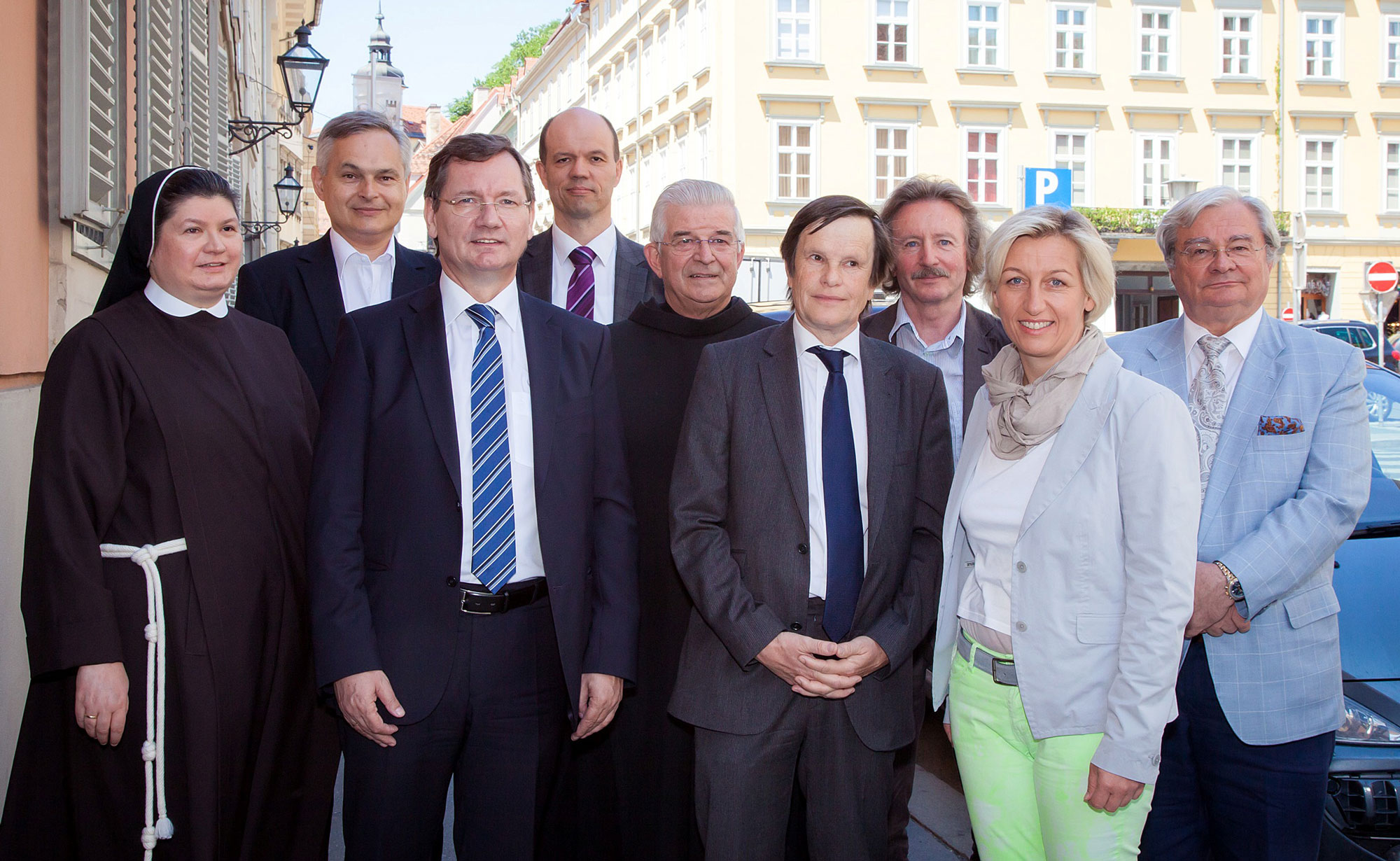 Sr. Dipl.KH-BW Bonaventura Holzmann, Univ.-Prof. Dr. Ing. Gerhard Stark (beide Elisabethinen), Adolf Inzinger (Barmherzige Brüder), MMag. Dr. Christian Lagger, MBA (Elisabethinen), Frater Paulus Kohler (BHB), Dr. Gert Klima, DI Harald Gaugg (beide Gesundheitsfonds), Univ. Prof. Dr. Karlheinz Tscheliessnigg (KAGes) © Foto Raggam
