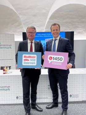 Ab 1. Oktober ergänzt das „MedMobil 1450 – Steiermark“ in drei Pilotregionen die medizinische Versorgung für die Bevölkerung. Das „MedMobil 1450 – Steiermark“ ist ein ärztlicher Visitendienst in den Nachtstunden, der die Fahrt in Spitalsambulanzen verhindern soll und über das Gesundheitstelefon 1450 vermittelt wird.