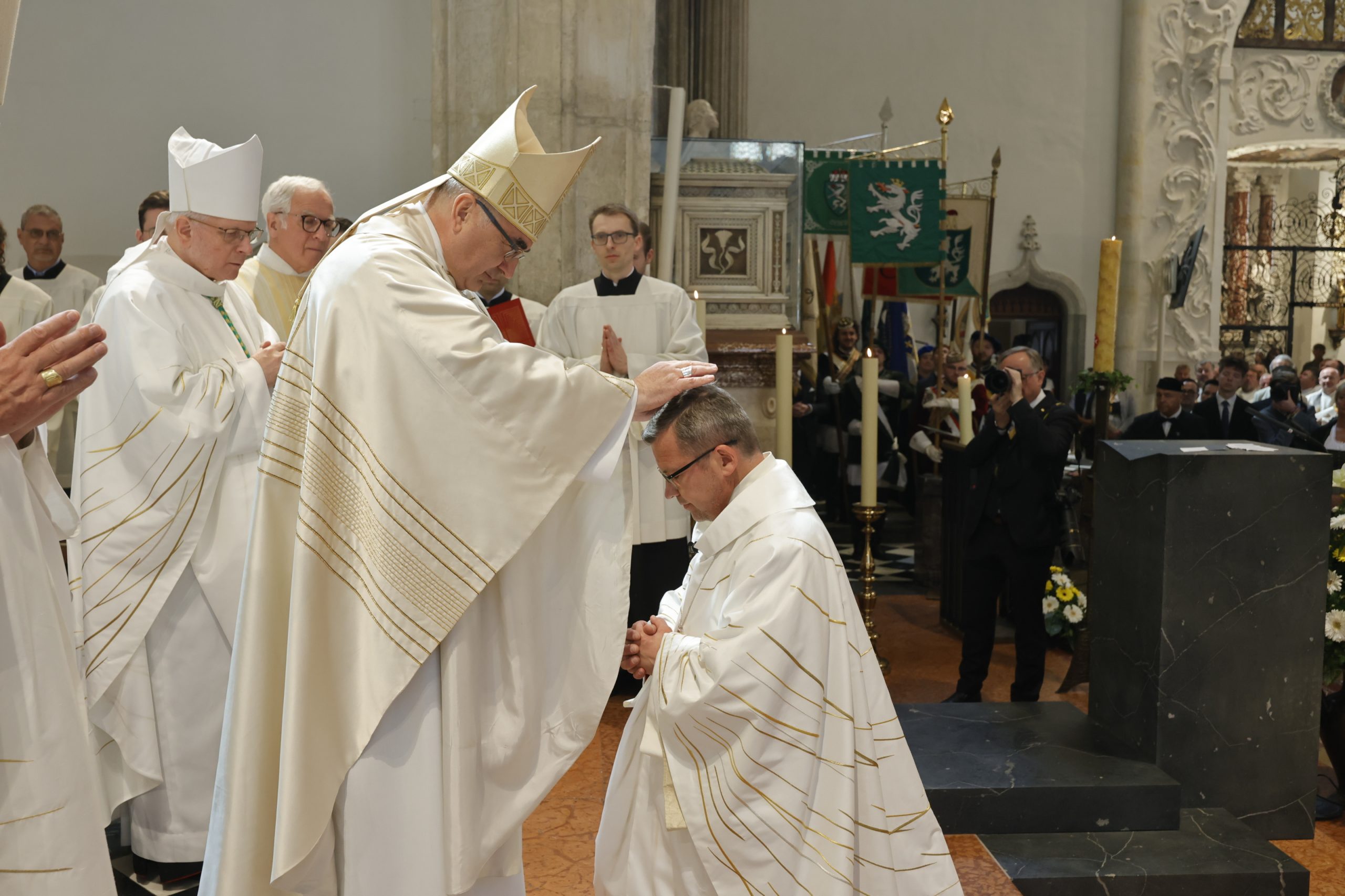 Der Staatsfeiertag 2025 ist für die Katholische Kirche in der Steiermark ein besonderer Tag: Johannes Freitag wurde im Beisein von mehr als 1.000 Gläubigen und vielen Ehrengästen am Vormittag im Grazer Dom zum Weihbischof der Diözese Graz-Seckau geweiht. Seitens der offiziellen Steiermark wohnten der Bischofsweihe unter anderem Landeshauptmann-Stellvertreterin Manuela Khom und die ehemaligen Landeshauptleute Waltraud Klasnic, Hermann Schützenhöfer und Christopher Drexler bei. Als Hauptzelebrant und Hauptkonsekrator wirkte Diözesanbischof Wilhelm Krautwaschl, als Mitkonsekratoren fungierten der Salzburger Erzbischof Franz Lackner und Militärbischof Werner Freistetter.
