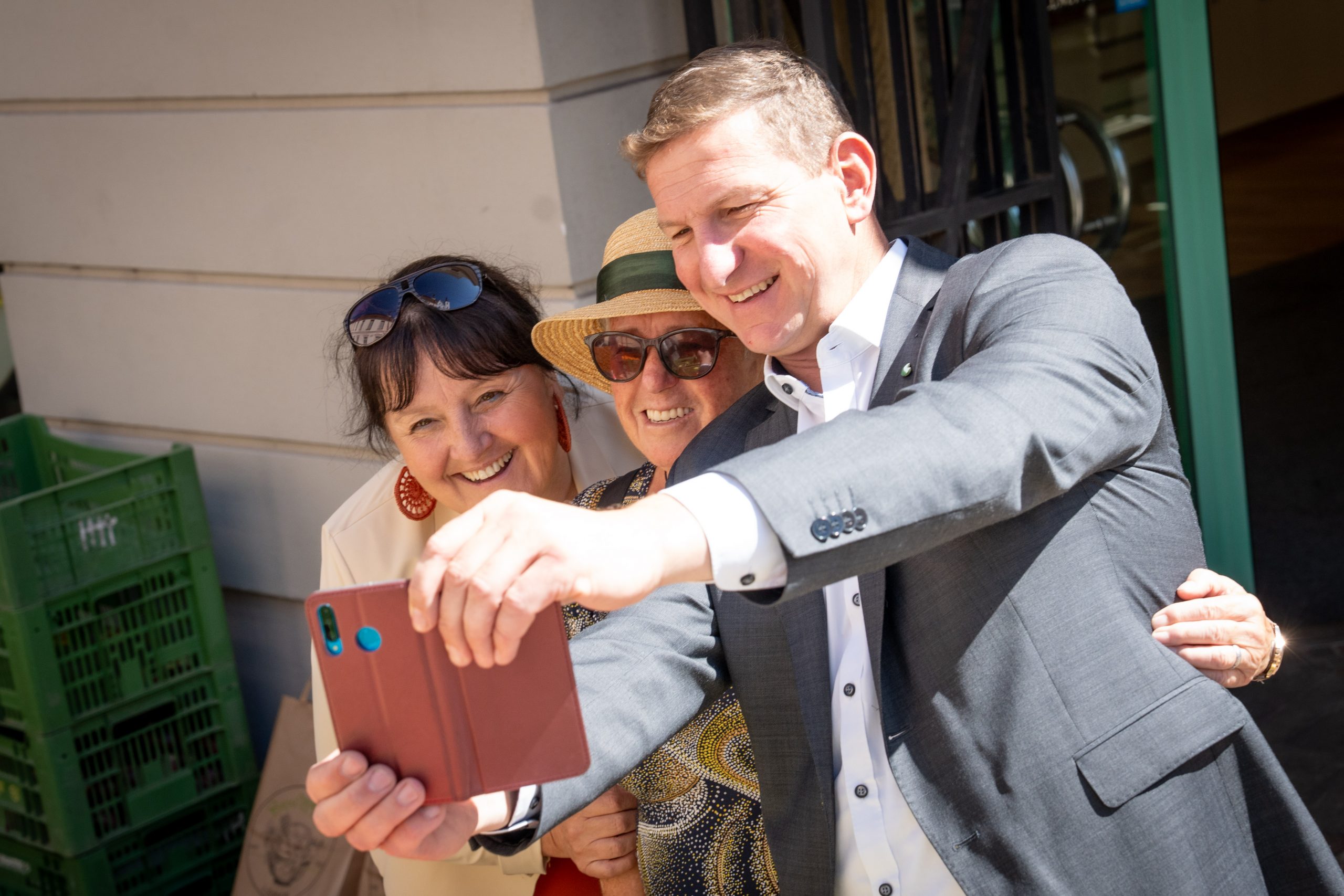 Khom und Kühberger mit Besucherin des Bauermarkt Leoben (c) STVP