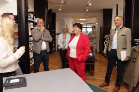 Bereits am Vormittag ging es daher in der Weizer Innenstadt Schlag auf Schlag, wo viele Gespräche mit Wirtschaftstreibenden am Programm standen, um ihre Sorgen aufzunehmen und so manchen Input für die landespolitische Arbeit mitzunehmen. Den Auftakt bildete daher ein „Frühstück zur Innenstadtbelebung“ im traditionsreichen Delikatessengeschäft Bleykolm, dass seit 1922 Delikatessen von höchster Qualität verkauft. Gemeinsam mit der Geschäftsführung von „Feinkost Bleykolm“ sowie den regionalen politischen Verantwortungsträgern der Steirischen Volkspartei ging es um die Herausforderungen im innerstädtischen Handel und mögliche Ideen, wie die Politik die Belebung von Innenstädten unterstützen kann. „Die Orts- und Stadtkerne sind zentrale Orte unseres Landes, wo man sich trifft, wo man einkaufen kann und wo Gemeinschaft gelebt wird. Leider müssen wir erleben, dass die Innenstädte vielerorts vor großen Herausforderungen stehen und wir alle daher gefordert sind, der innerstädtischen Wirtschaft unter die Arme zu greifen. Daher hat es mich heute sehr gefreut, mit vielen findigen Kaufleuten in der Weizer Innenstadt ins Gespräch zu kommen und hinzuhören, wo der Schuh drückt und wo Maßnahmen des Landes Steiermark wie der Ortskernkoordinator helfen können“, so Landeshauptmann-Stellvertreterin Manuela Khom. Neben „Feinkost Bleykolm“ standen daher unter anderem auch Besuche bei Modehaus Laschober, dem Cafe La Vita und im Feinkostladen der Adolf Haas KG am Programm, die vor allem für ihre Spirituosenbrennerei sehr bekannt ist.