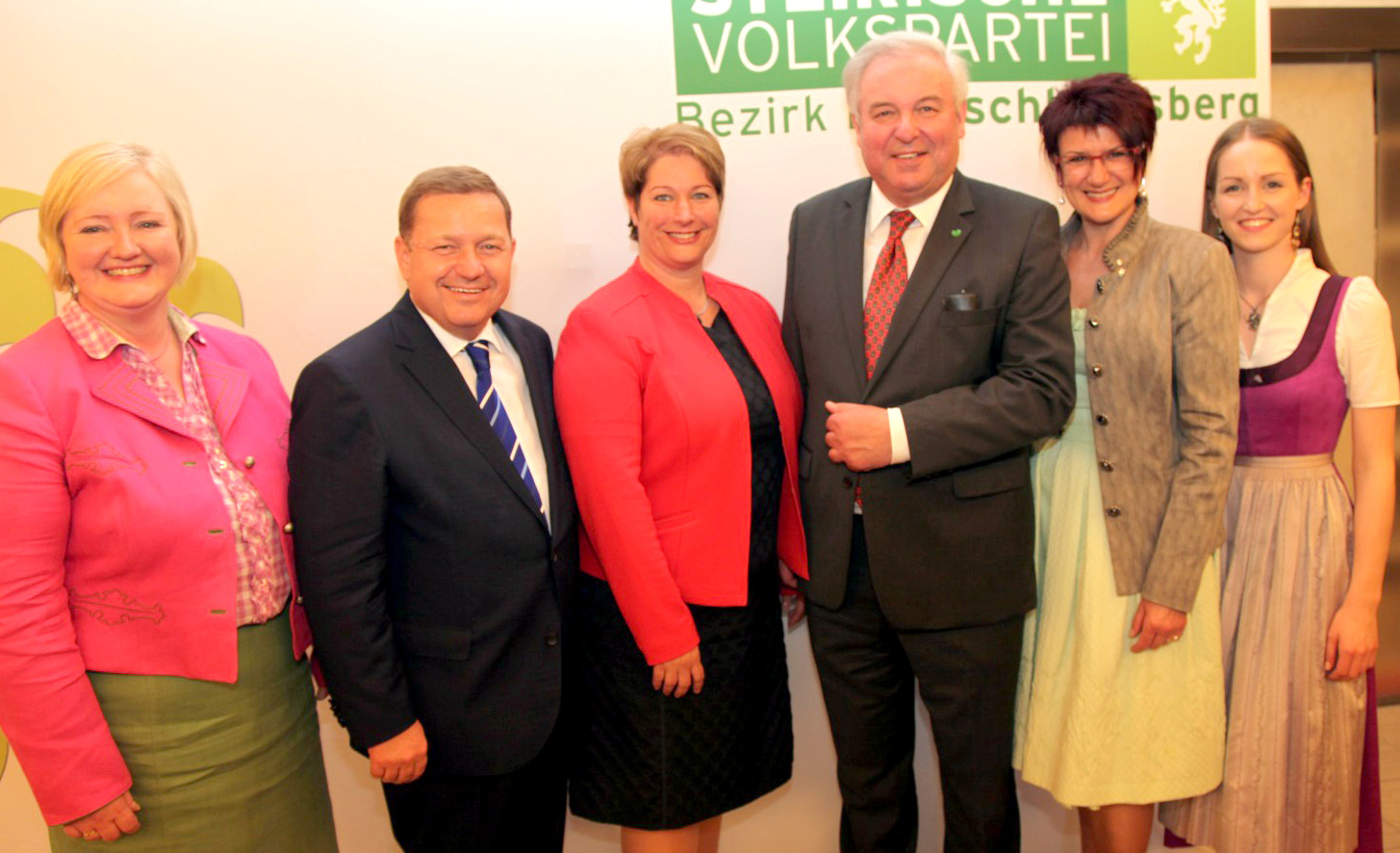 Bürgermeisterkonferenz Deutschlandsberg: Vzbgm. gf. OPO Theresia Koch, BPO Abg. z. NR Werner Amon, MBA, OPO Bgm. Maria Skazel, Hermann Schützenhöfer, Bezirksobfrau der VP-Frauen Hermelinde Sauer, BGF Johanna Resch (v.l.)