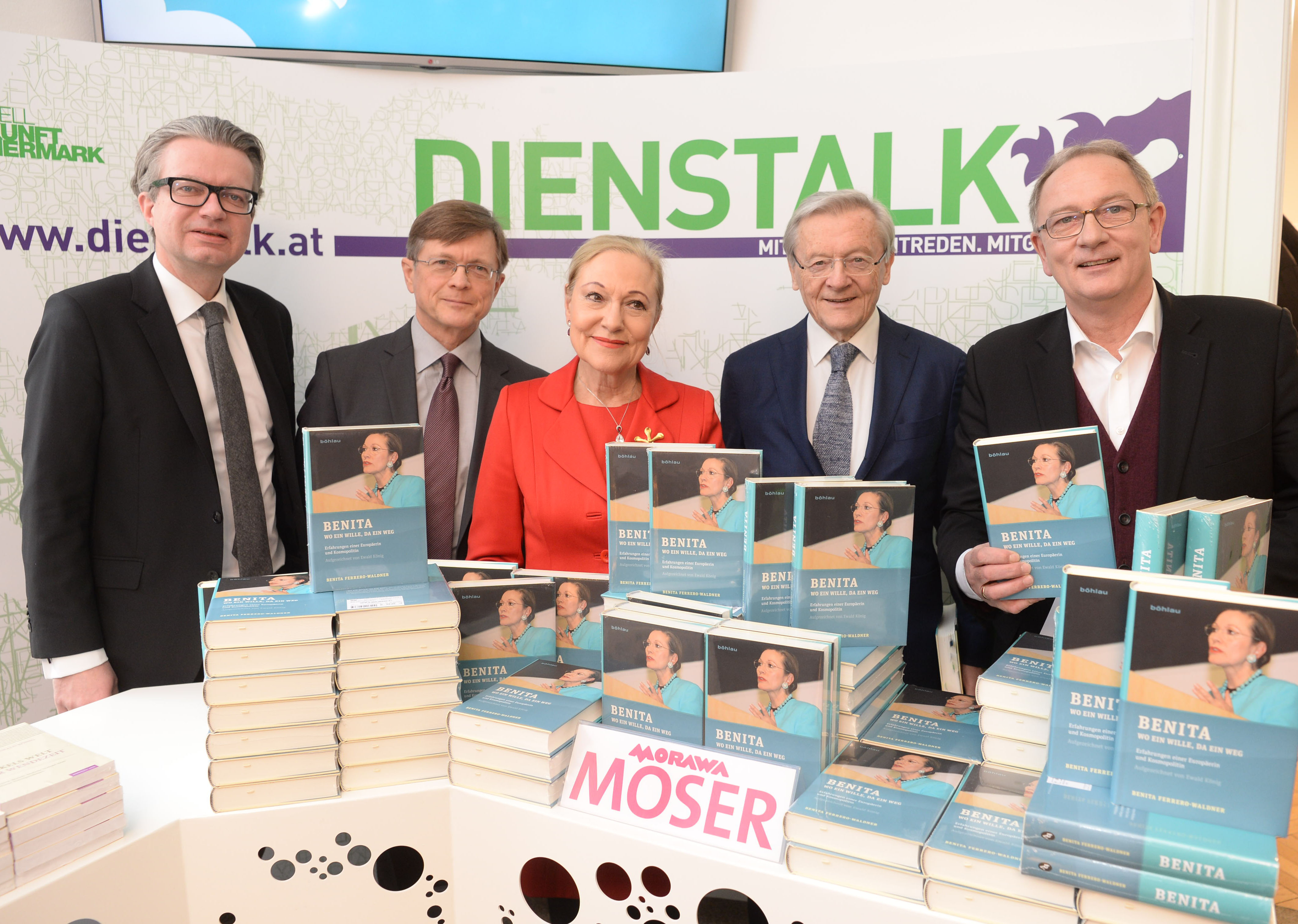 Nach Wien, Berlin und Madrid präsentierte Benita Ferrero-Waldner heute ihr Buch „Benita, wo Wille, da ein Weg“ im Rahmen einer politischen Debatte in der Landesparteizentrale der Steirischen Volkspartei am Karmeliterplatz in Graz. Neben zahlreichen Interessierten durfte Landesgeschäftsführer Detlev Eisel-Eiselsberg auch die Gesprächspartner der einstigen Außenministerin in seinem Haus begrüßen. Durch die Debatte mit dem ehemaligen Bundeskanzler Wolfgang Schüssel und Landesrat Christopher Drexler führte der erfahrene Journalist und Mitautor Ewald König.