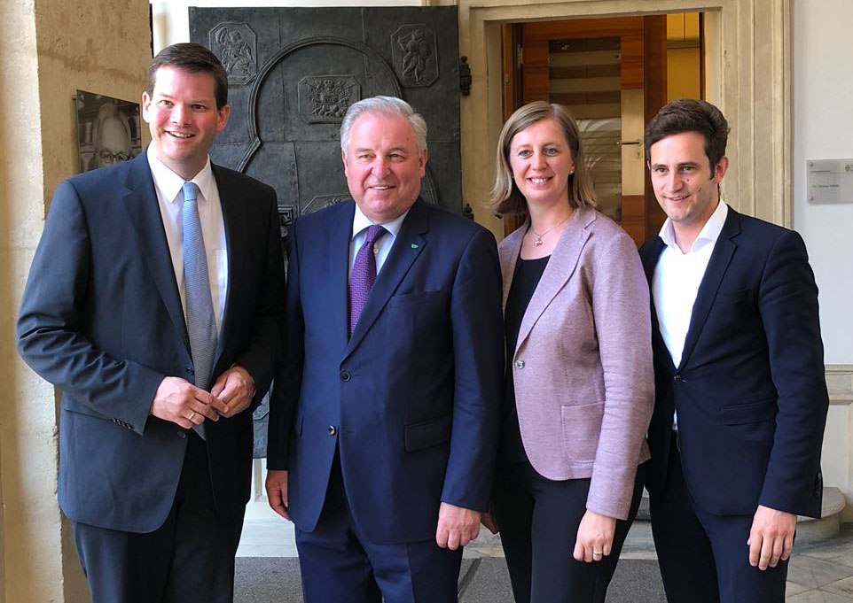 Mit Mandl war auch dessen Vater ins Landhaus angereist. „Mein Vater ist 1933 in Graz geboren und aufgewachsen, einige Jahre hat er auch in Lebring verbracht. Mein Großvater war vor genau 100 Jahren durch die Mur aus dem heutigen Slowenien geflüchtet. Heute arbeiten in ganz enger Partnerschaft und Freundschaft in der Europäischen Union mit Slowenien zusammen. Dass das alles möglich ist liegt an der Aufbauarbeit der zwei Generationen vor uns. So haben wir heute das beste Europa, das es je gab. Wir müssen uns aber sehr anstrengen, um Europa besser zu machen und auch unseren Kindern ein gutes Europa zu übergeben“, erklärt Mandl.