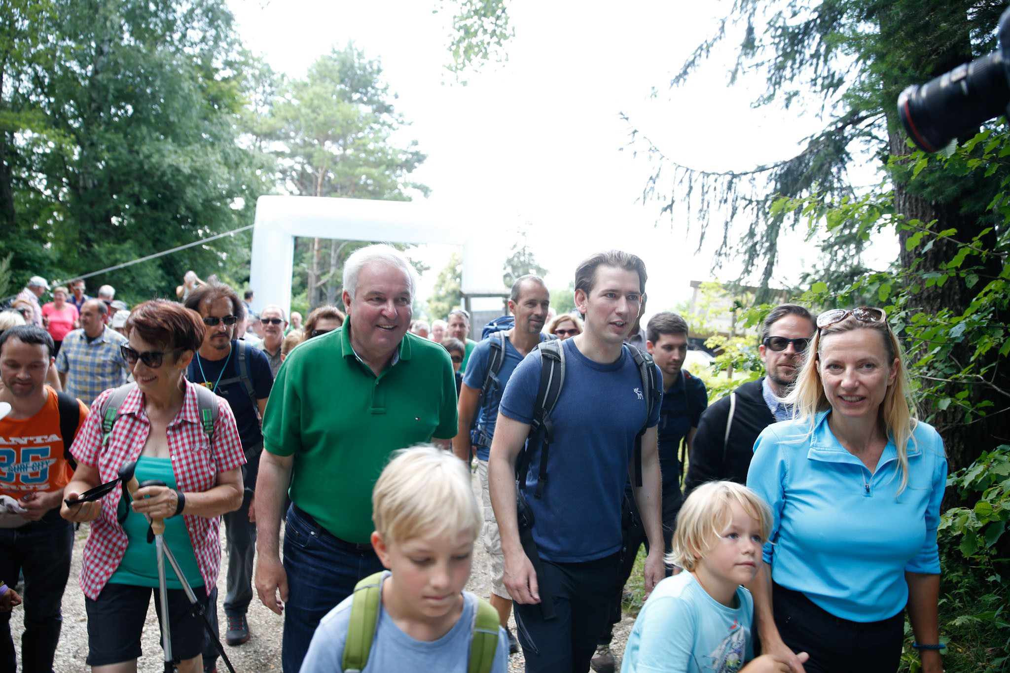 Mehr als 2.500 Sportbegeisterte, Unterstützer und Interessierte wanderten am Samstagvormittag zusammen mit Bundeskanzler Sebastian Kurz und Landeshauptmann Hermann Schützenhöfer auf den 1.445 Meter hohen Schöckl nahe Graz. Die Wanderung markierte den Auftakt der Sommertour „Bergauf, Österreich“, die den Bundeskanzler und VP-Bundesparteiobmann in den nächsten Wochen auf mehrere Berge Österreichs führen wird.