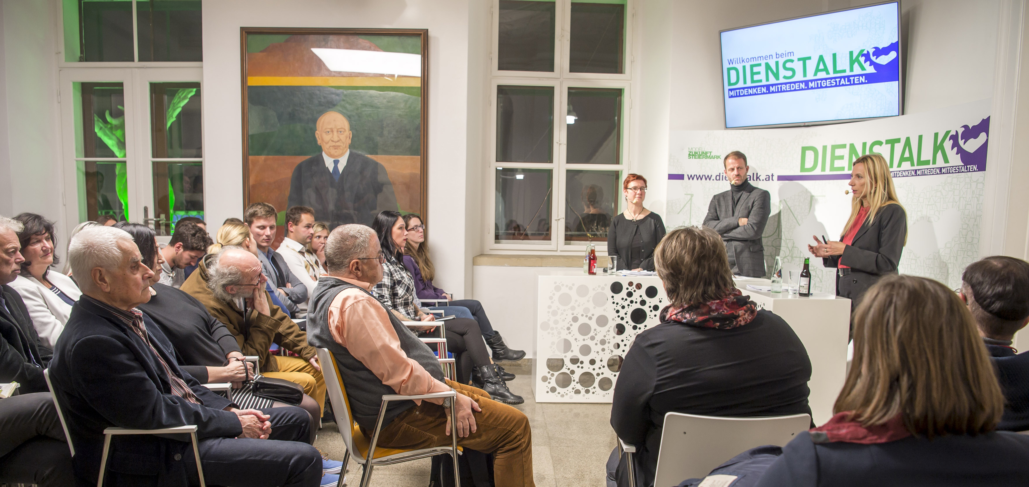 Eine spannende Debatte erwartete die Gäste des gestrigen DiensTalks in der Parteizentrale der Steirischen Volkspartei am Karmeliterplatz. Moderator Michael Fleischhacker begrüßte die Diskutanten Juliane Bogner-Strauß, Bundesministerin für Frauen, Familie und Jugend, sowie Margit Schratzenstaller, stellvertretende Leiterin des Österreichischen Institutes für Wirtschaftsforschung, am Podium.