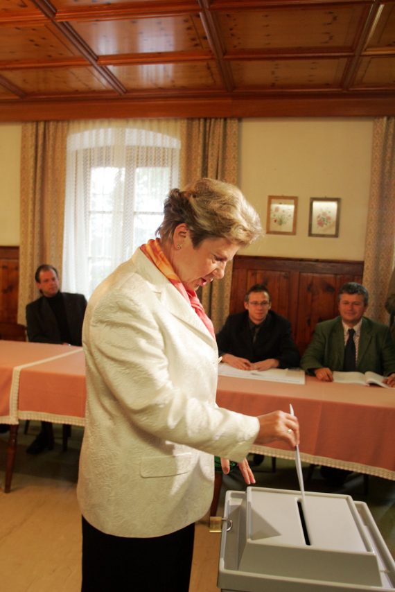 Waltraud Klasnic bei der Stimmabgabe zur Landtagswahl am 2. Oktober 2005.