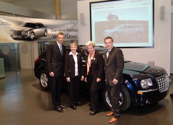 Der Autocluster als steirisches Erfolgsmodell. Waltraud Klasnic mit Martin Bartenstein, einer Vertreterin von Chrysler und Siegfried Wolf (Magna).