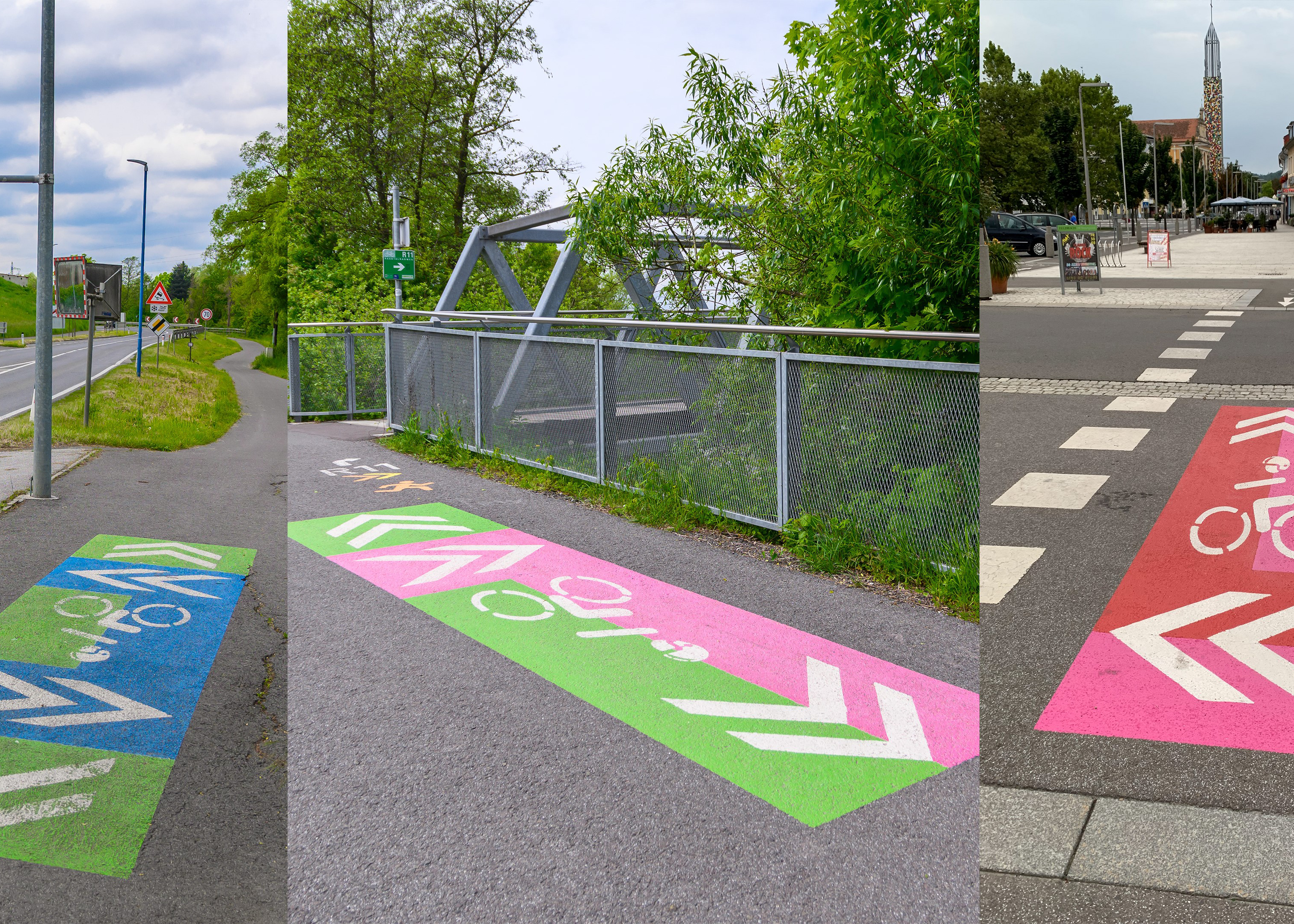 In Feldbach wird geradelt! Die Stadtgemeinde Feldbach hat sich nach der Gemeindefusion im Jahr 2015 das Ziel gesetzt, alle Ortsteile in das Feldbacher Radnetz einzubinden, sowie das bestehende Netz großzügig auszubauen und zu modernisieren. Dazu wurden bisher 3,6 Millionen Euro investiert. Sechs Hauptradrouten wurden geschaffen, die alle Ortsteile miteinander verbinden. Dieses Netz umfasst derzeit 44 km. Die Kennzeichnung der Routen erfolgte nicht mit Schildern, sondern mit Piktogrammen auf den Radwegen, wobei jede Route mit einer eigenen Farbe gekennzeichnet ist. Im Bereich der Verbindungen der Radwege, wurden diese mehrfarbig gestaltet. Die Stadtgemeinde setzt auf das Radfahren und der Ausbau des Netzes soll auch weiterhin forciert werden!