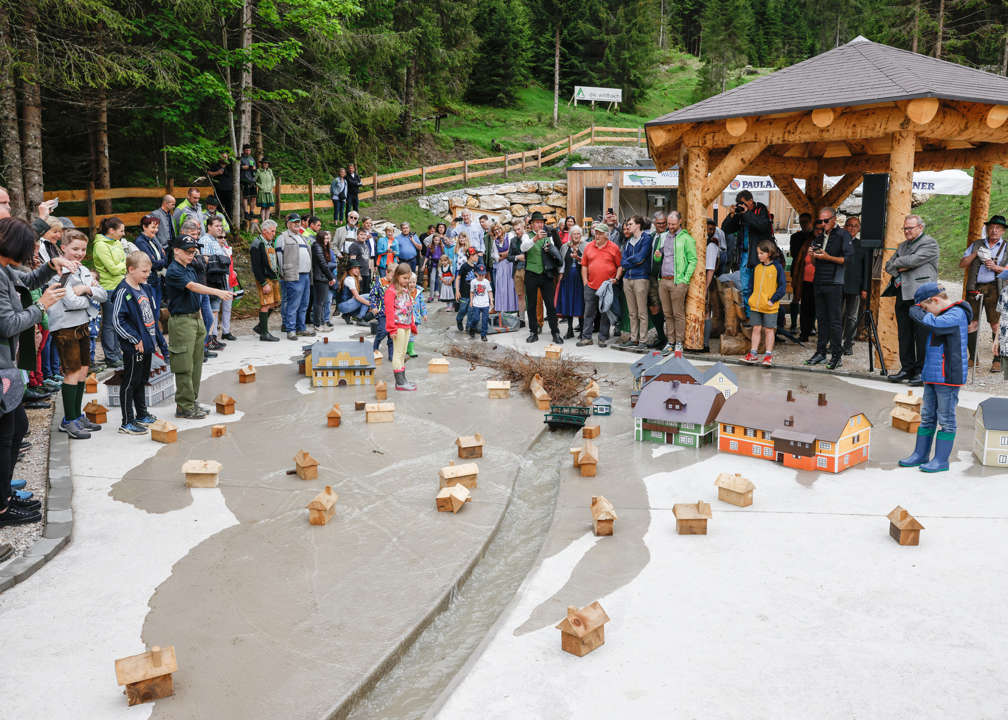 Auch die Gemeinde Öblarn baut mit ihrem außergewöhnlichen Demonstrationsmodell „Wassererlebnis Öblarn“ auf eine nachhaltige Bewusstseinsbildung. Das Vorzeigeprojekt bietet Menschen jeden Alters die Möglichkeit, das Funktionieren des Waldes und die Schutzmöglichkeiten vor Naturgefahren besser zu verstehen. Das Modell umfasst das Einzugsgebiet des Walchenbaches, den Ort Öblarn und die Retentionsflächen an der Enns im Maßstab 1:25 nachgebaut. Es verfügt über ein leistungsstarkes Pumpsystem, mit dem verschiedene Naturgefahrenszenarien wie Hochwasser, Muren und Verklausungen realitätsnah simuliert werden können. Das „Citizen Science Konzept“ ermöglicht die Teilnahme von Kindern, Schülern und Erwachsenen an begleiteten Aktivitäten zur Erstellung didaktischer Materialien und zur gemeinsamen Gestaltung des Modellbetriebs. Dadurch wird das Wissen verbreitet und das Engagement der Gemeindemitglieder für den Umweltschutz gefördert. Das Projekt zeigt, dass es möglich ist, Umweltbewusstsein zu schaffen, Menschen für Naturgefahren zu sensibilisieren und so einen aktiven Beitrag zum Schutz der Umwelt und des Klimas zu leisten.