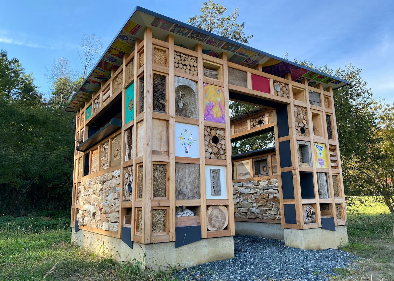 Die Gemeinde Unterlamm hat es sich zur Aufgabe gemacht, ihre einzigartige Kulturlandschaft zu schützen und weiterzuentwickeln. Dafür hat die Gemeinde durch einen Bürger-Leitbildprozess das Projekt „Mensch & Natur im Einklang“ ins Leben gerufen. Ziel des Projektes ist es, die regionale Natur- und Kulturlandschaft für künftige Generationen durch ein nachhaltiges und ganzheitliches Bewusstsein sowie Handeln zu erhalten. Jede und jeder einzelne, egal ob Jung oder Alt, hat die Möglichkeit, einen Beitrag zu leisten, um dieses Ziel zu erreichen. Ein besonderes Element des Projekts ist der „ERLebensraum Insektenhotel“: Diese Einrichtung besteht aus einer blühenden Bienenblumenweide, einem Schmetterlings-Garten und einem beeindruckenden „5***** Mensch & Natur Insektenhotel“. In diesem Hotel finden zahlreiche Insekten, Spinnentiere, Amphibien und Reptilien eine sichere und naturnahe Unterkunft. So soll das Bewusstsein für die Bedeutung der Umwelt und für den Erhalt der Natur bei Erwachsenen und auch bei heranwachsenden Generationen gefördert werden.