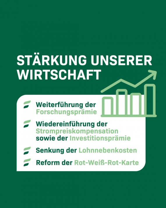 Wir treten auf Bundesebene dafür ein, die Wettbewerbsfähigkeit des Standorts Steiermark zu stärken. Denn nur eine starke Wirtschaft, sichern Arbeitsplätze und Wohlstand für unser Land!